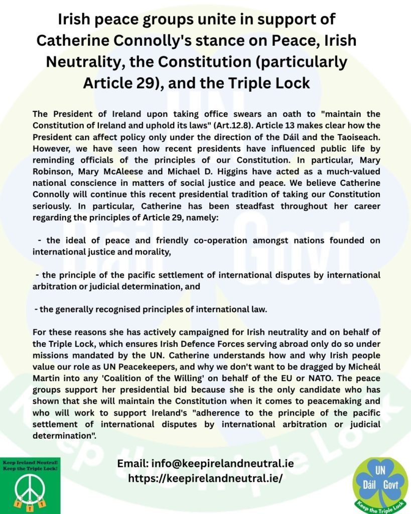 The push to weaken or remove the Triple Lock is happening without a public mandate. No referendum. No democratic debate. Just quiet manoeuvring by elites behind closed doors. If neutrality is to be abandoned, the people of Ireland — not a handful of politicians — must decide. Anything less is a betrayal of our democracy.